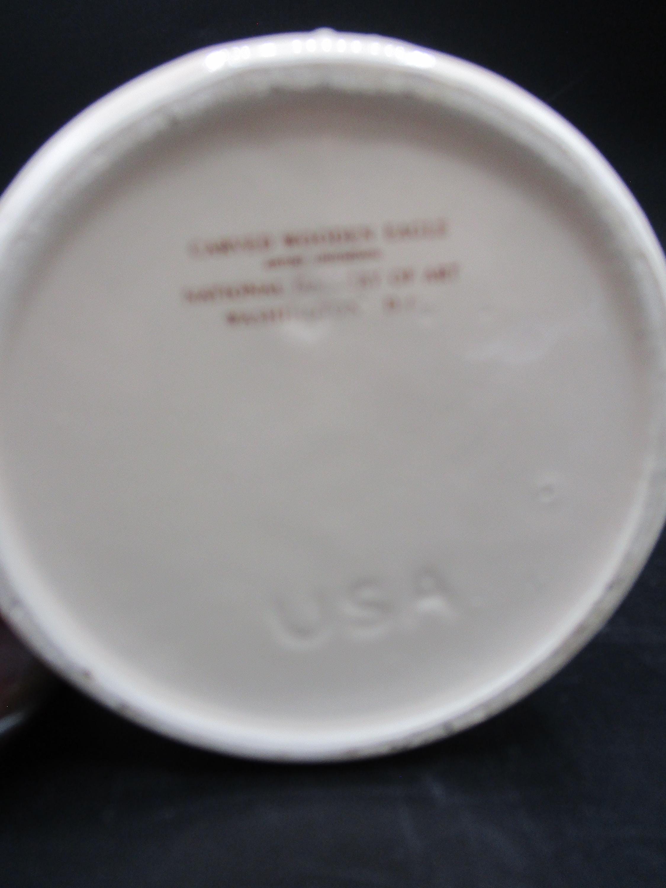 McCoy Pottery’s SPIRIT OF ’76 collection was first released in 1972 to celebrate America’s upcoming bicentennial in 1976. The decal on the SO’76 pottery features a picture of a carved wooden Eagle and Flag. Also, most SO’76 items have been stamped on the bottom to indicate that the image of the wooden eagle can actually be traced to a handcrafted wooden Eagle