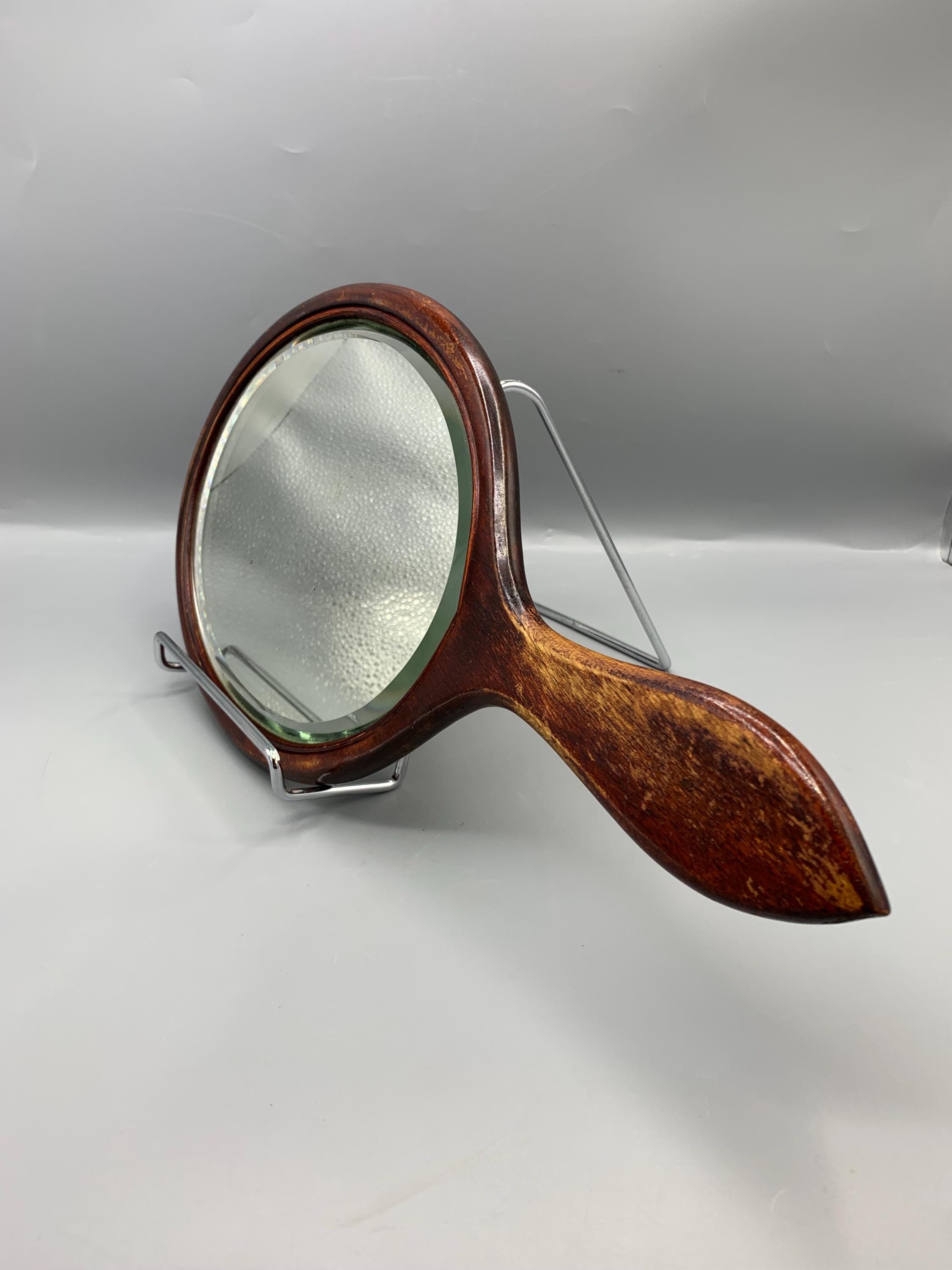 This handheld cosmetic mirror was picked by MemoryLaneVintiques in Granbury, TX. and is part of our shop’s personal collection of antique memorabilia.