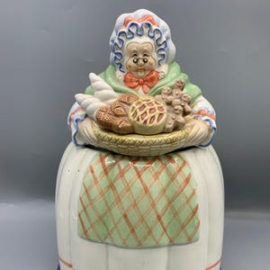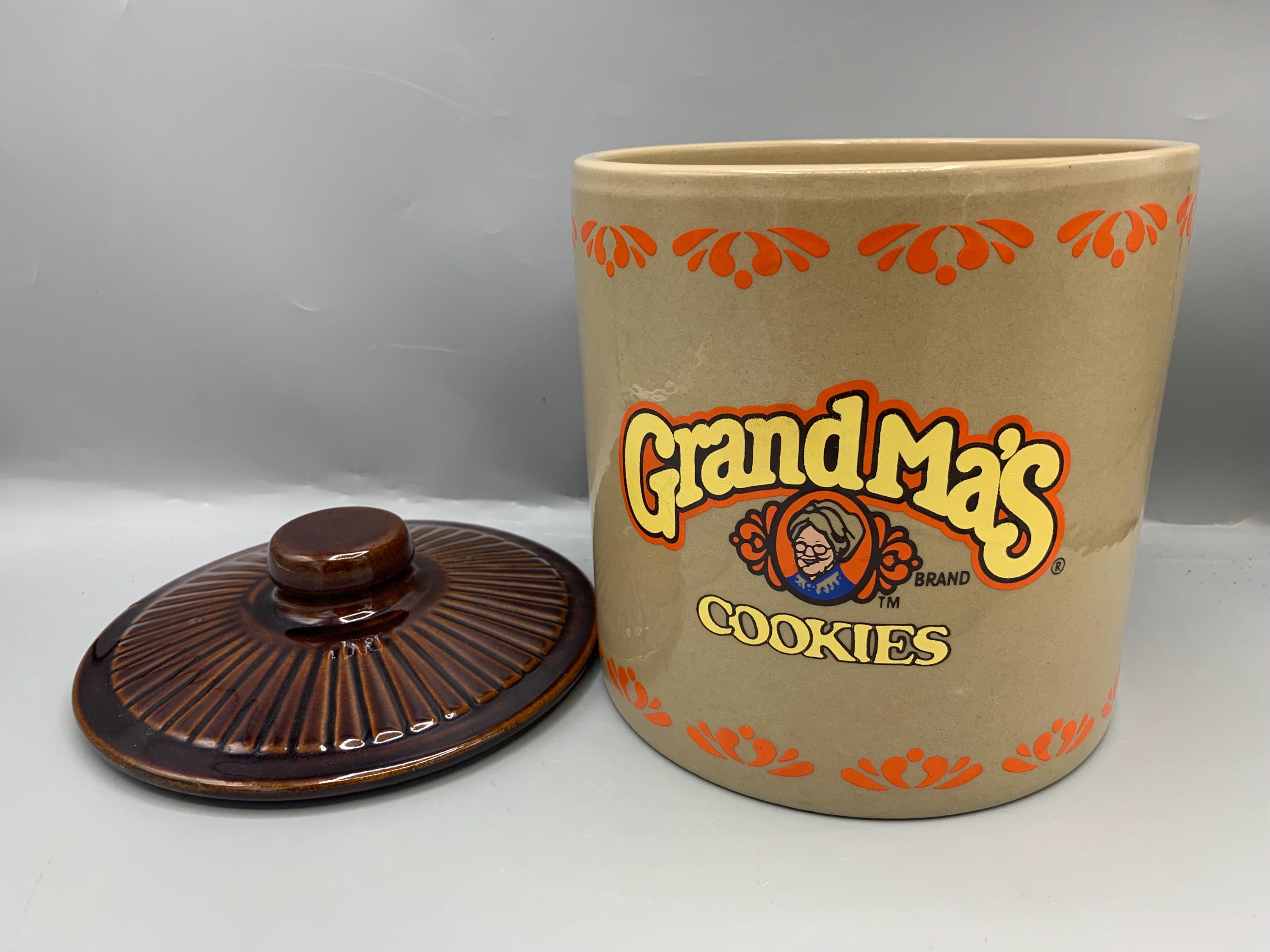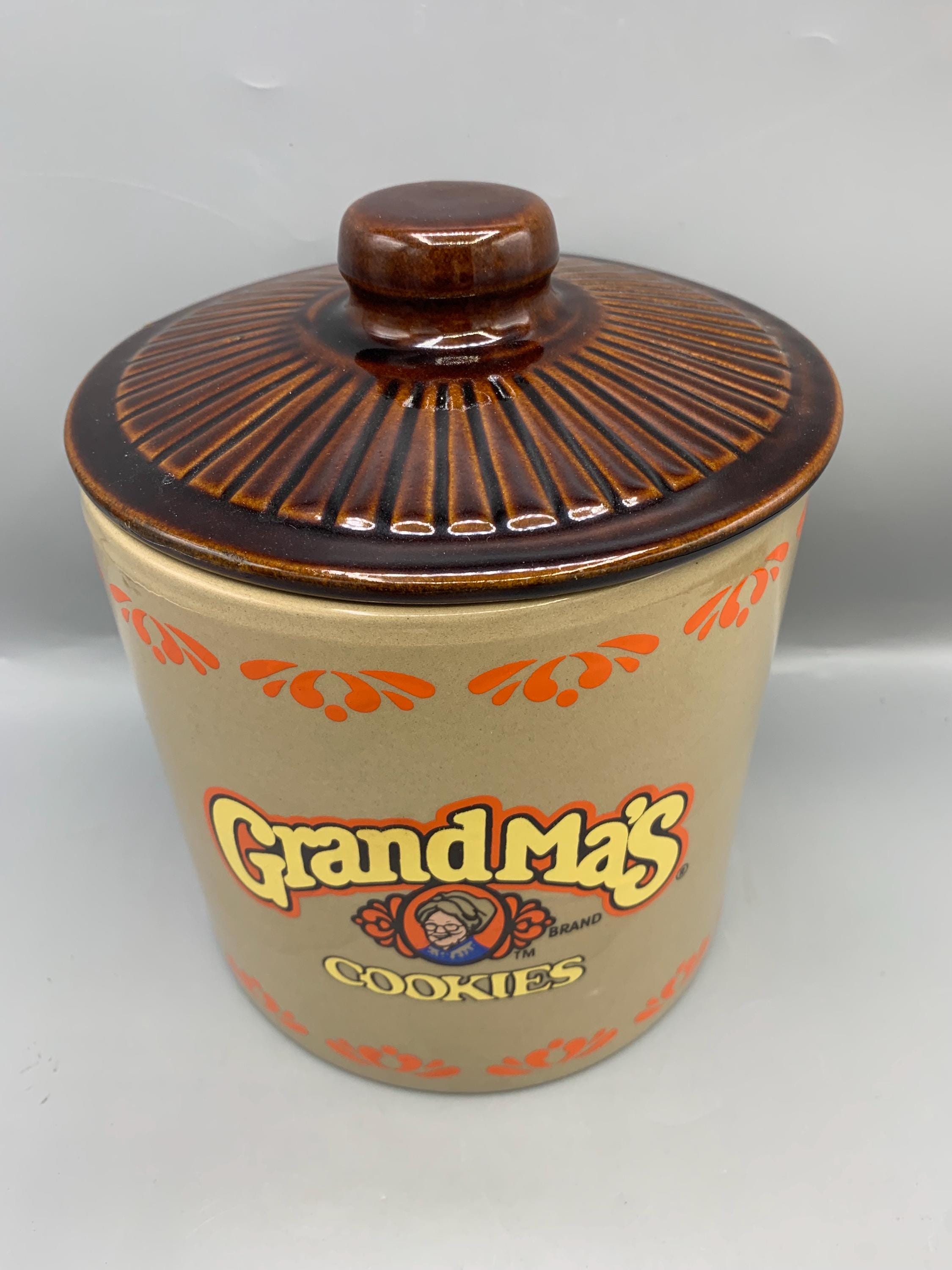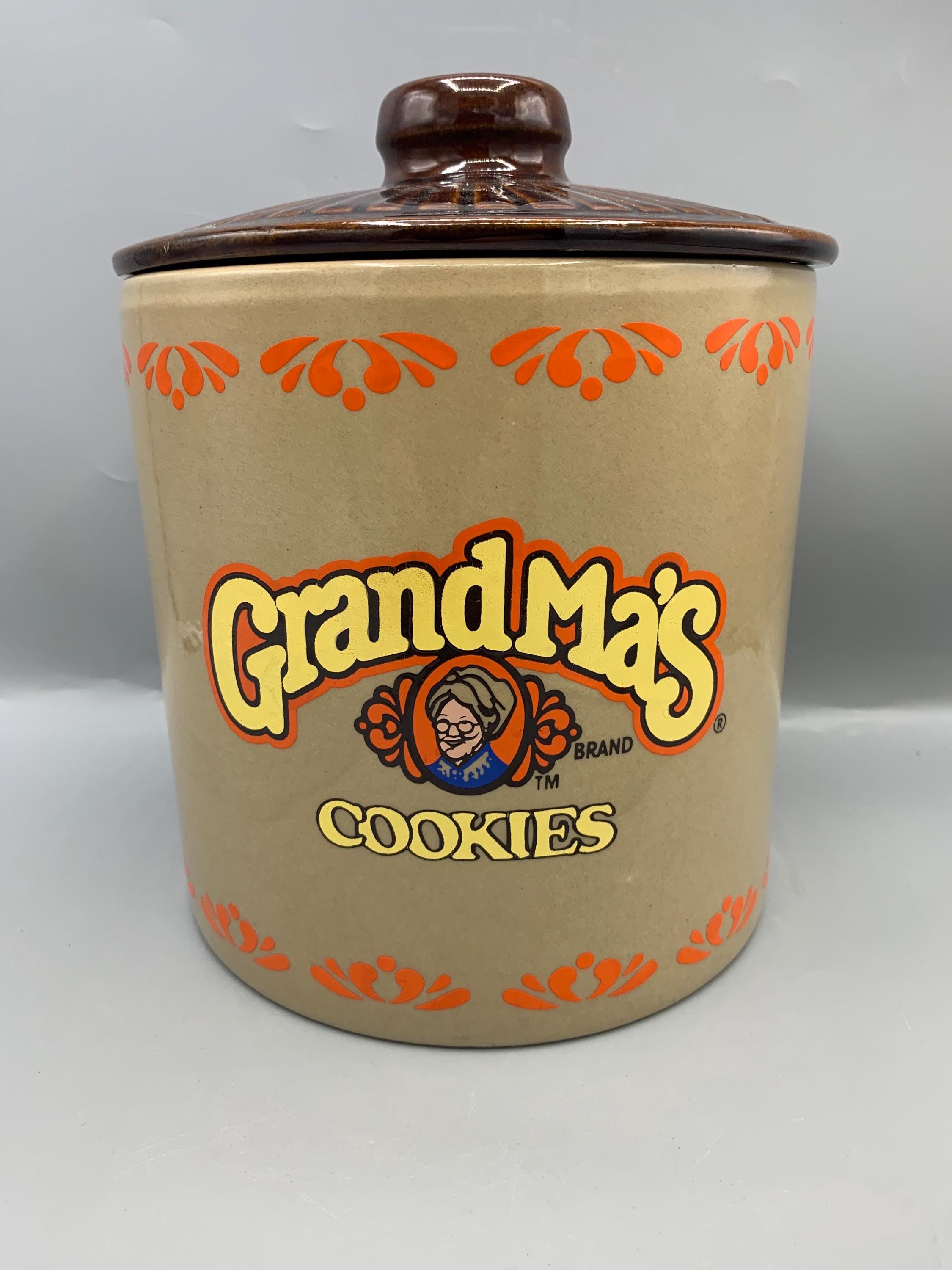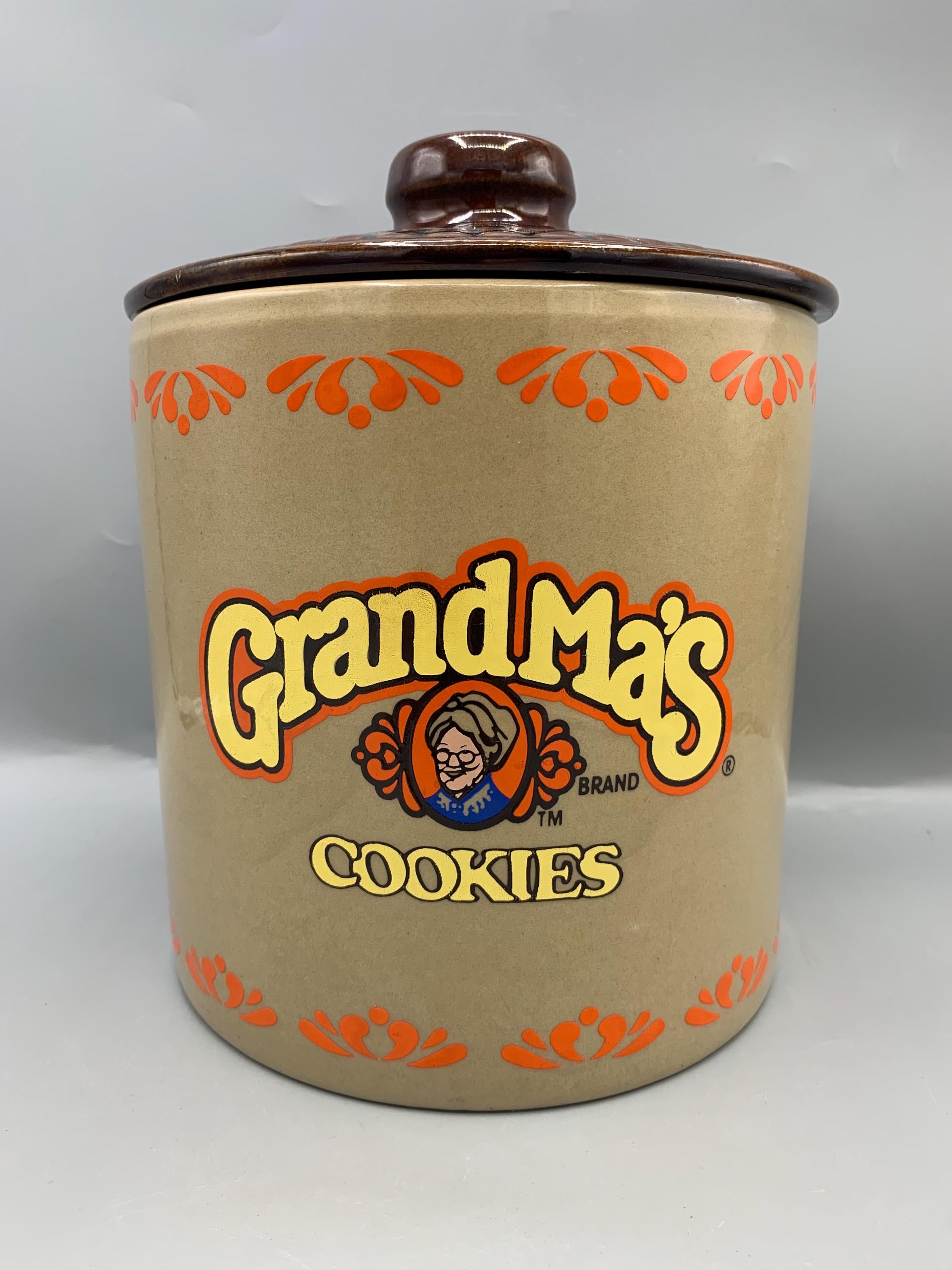 They kept expanding the company and by 1970 they had added 40,000 square feet to their bakery. By that time, they were selling cookies throughout the entire Pacific Northwest. Grandma's Cookies Grandma's Cookies became more famous, and the grandma's cookie trademark took on new dimensions. In the 1970s the people at Grandma's Cookie Company helped promote their product with three-dimensional advertising. They offered customers a figural bank in the image of their famous Grandma's trademark. The corporation even had famous English pottery furnaces in Staffordshire make their ceramic mugs. These mugs had gilded brims and featured their trademarked logo. The most collectible of the grandma's merchandise was the Cookie Crocks with lids made by various American studio potters like Western Stoneware and McCoy Pottery.