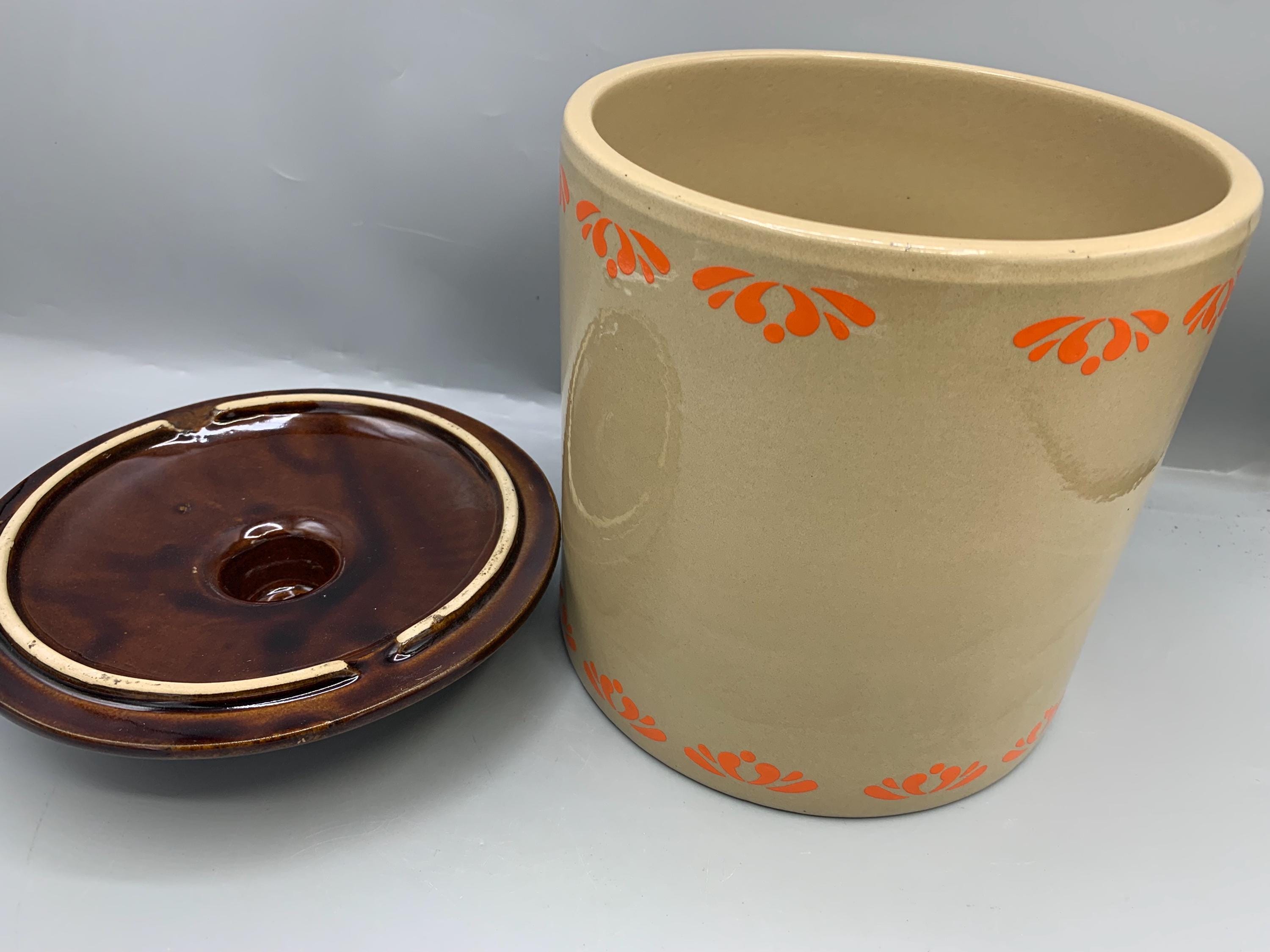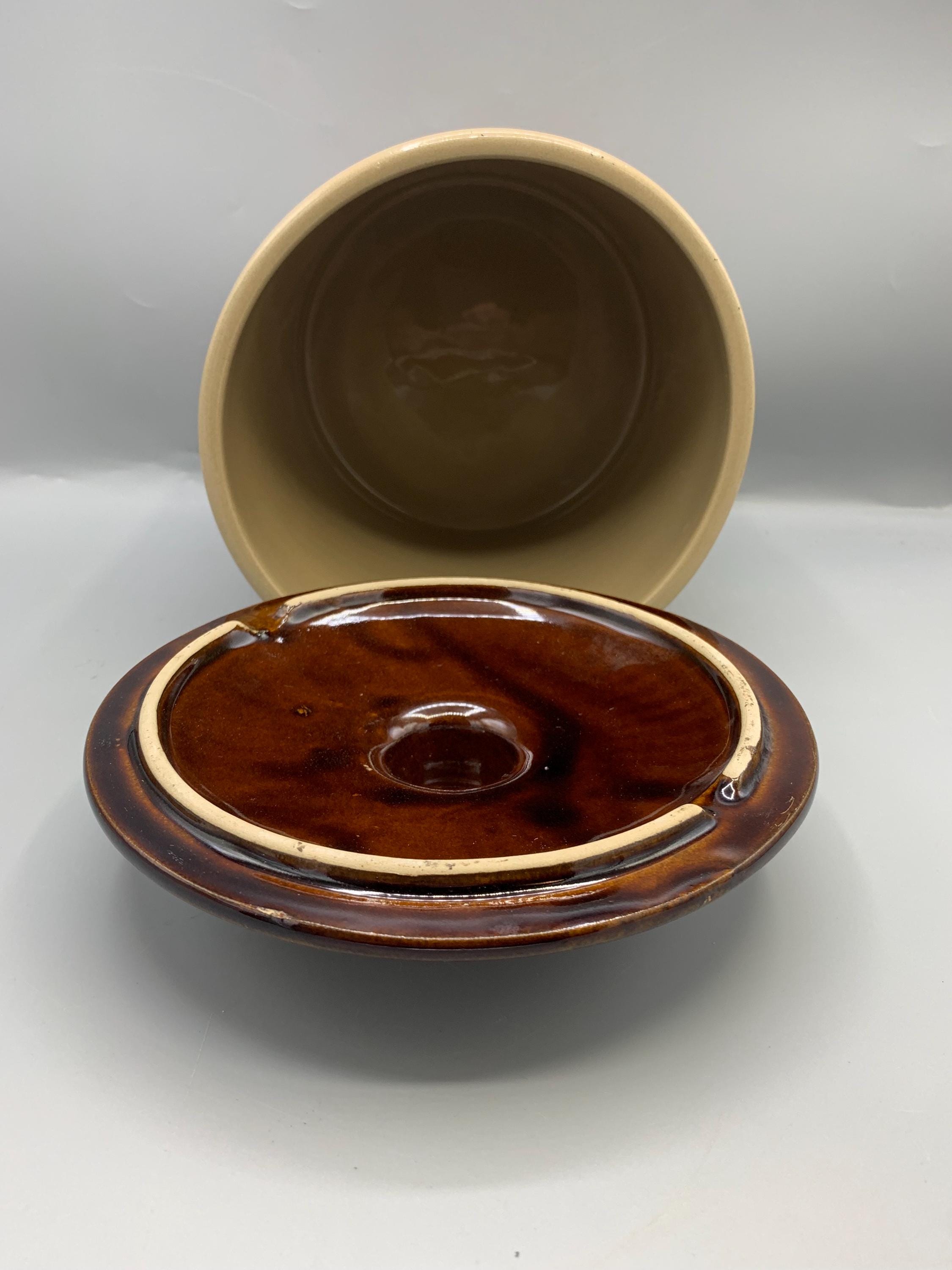 1980s Stoneware Two-Tone Cookie Crock made by Western Stoneware/Monmouth Pottery for Grandma’s Cookie Company.