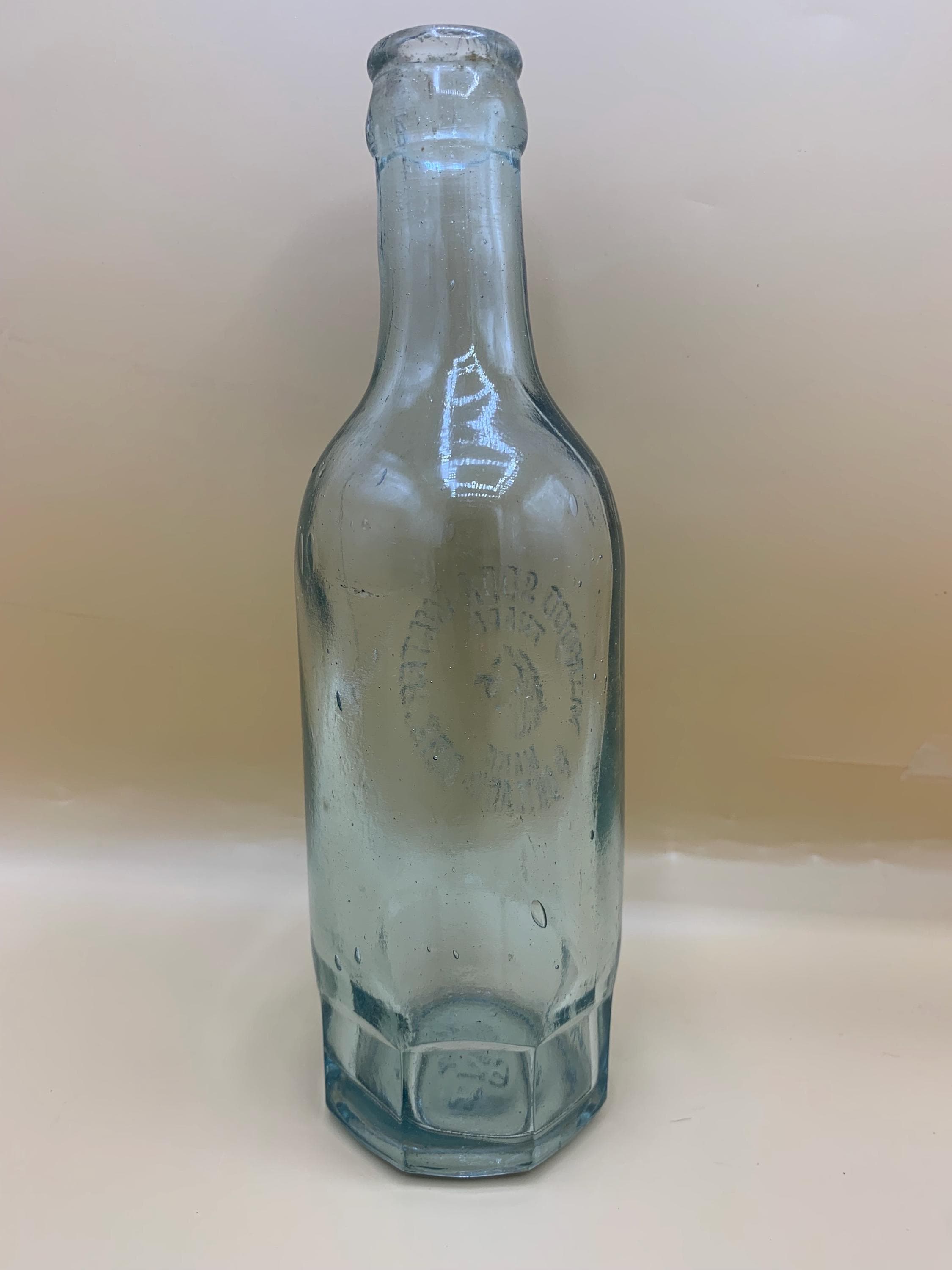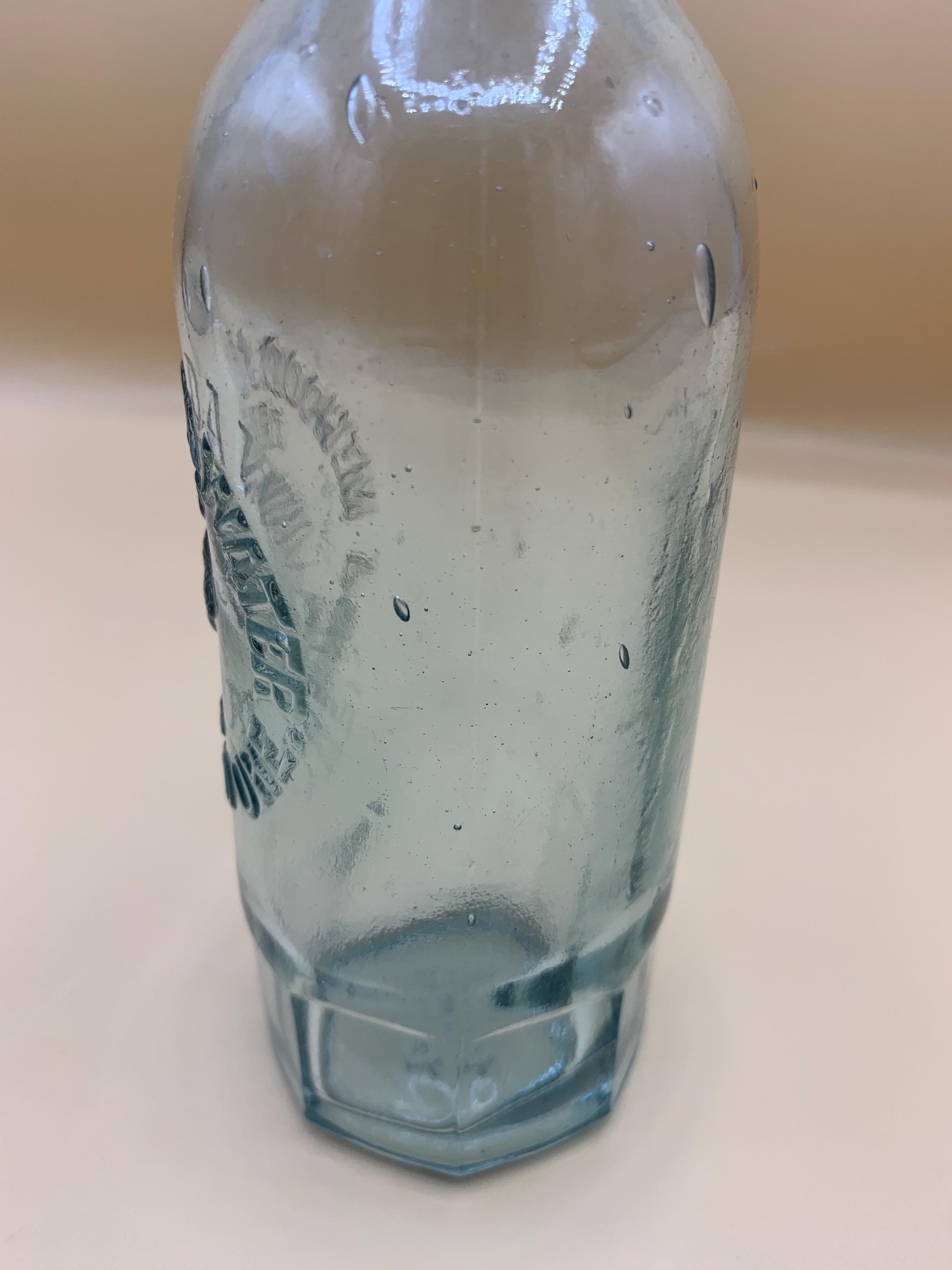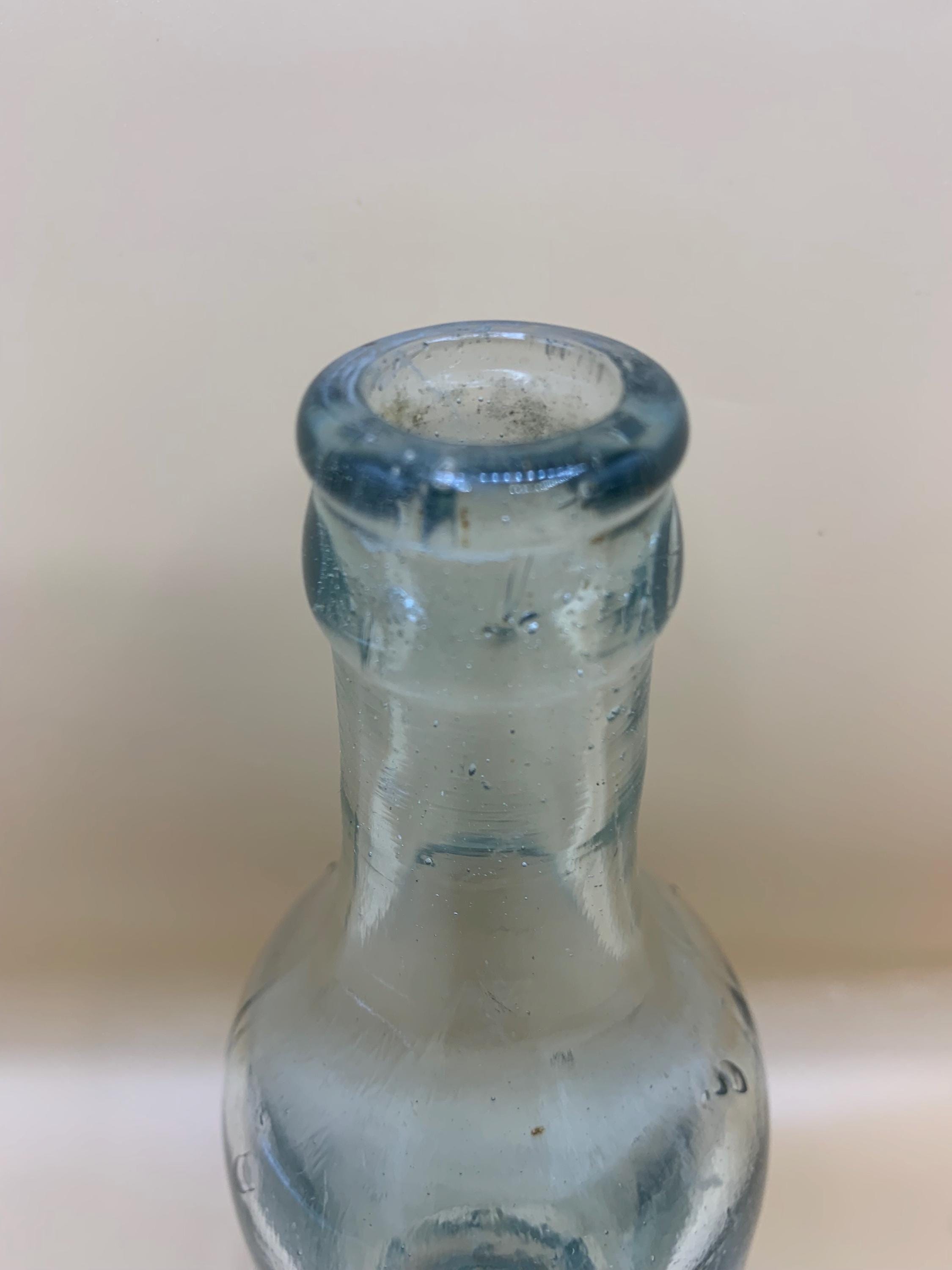 The glass had to be hand-blown significantly thicker and heavier than modern bottles because it needed to contain the pressure of the carbonated drinks. Colors like aqua green and a dark olive green were common due to the impurities in the glass mixture, but colorless "flint" glass was also used by some glassworks factories.