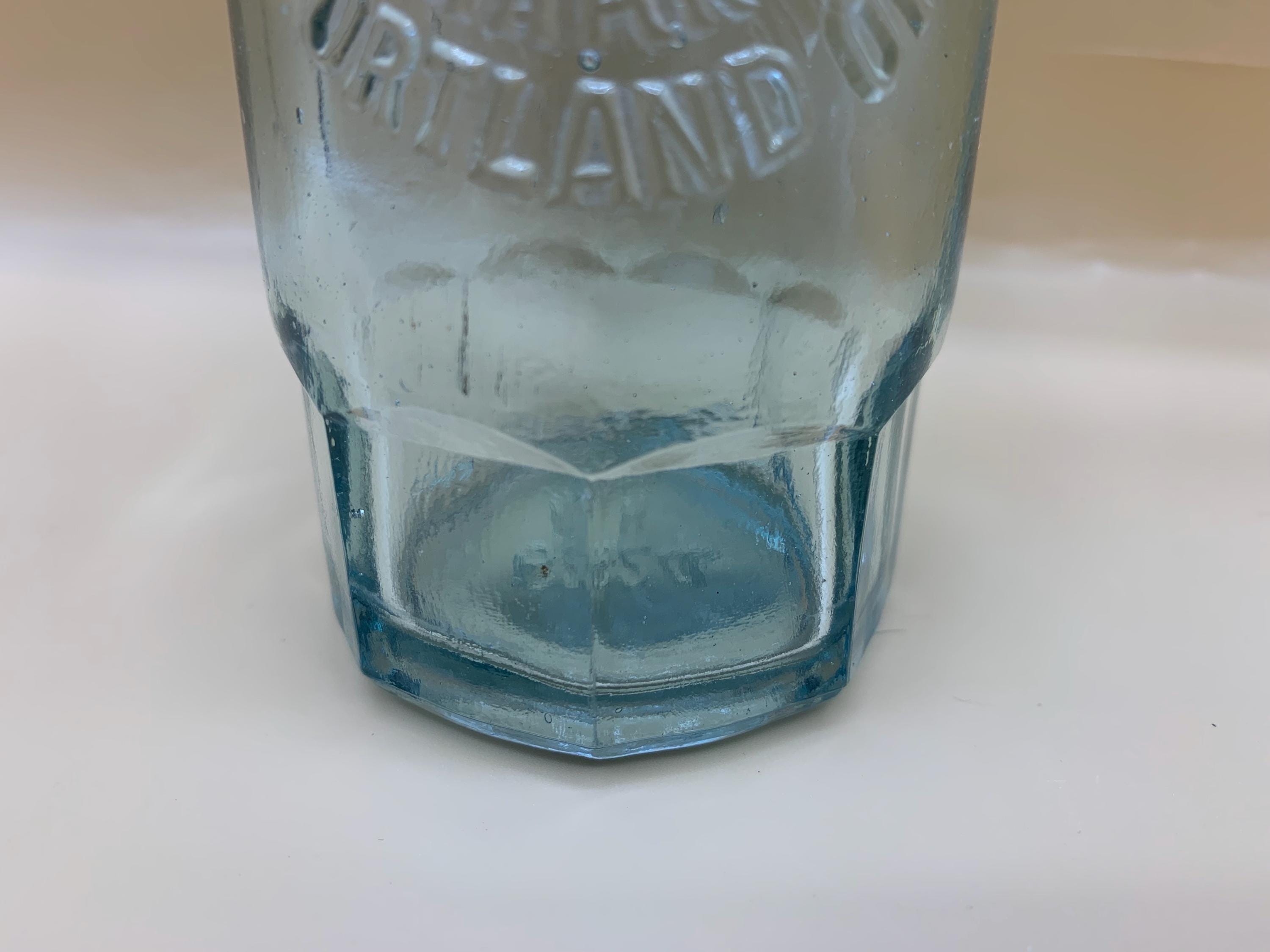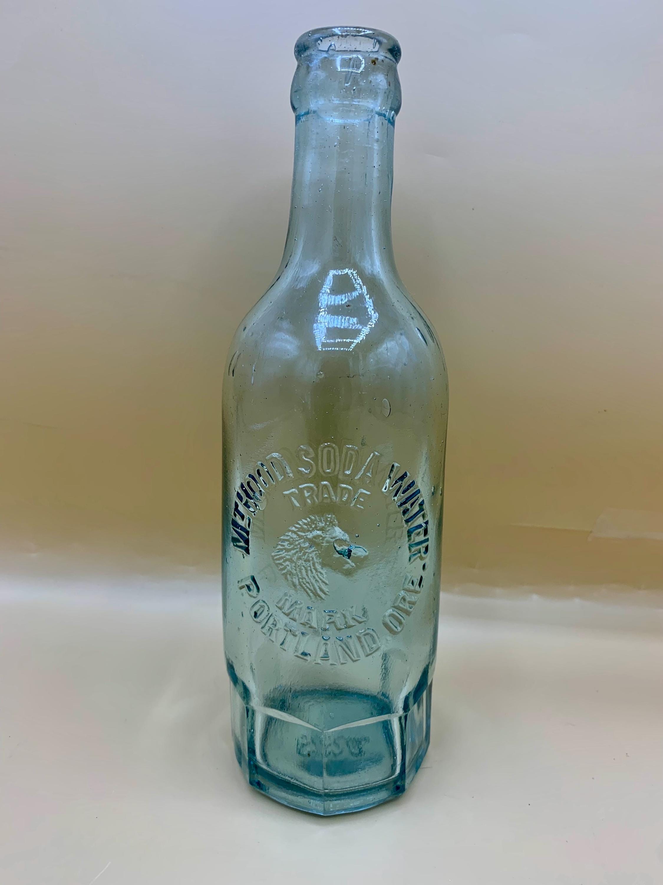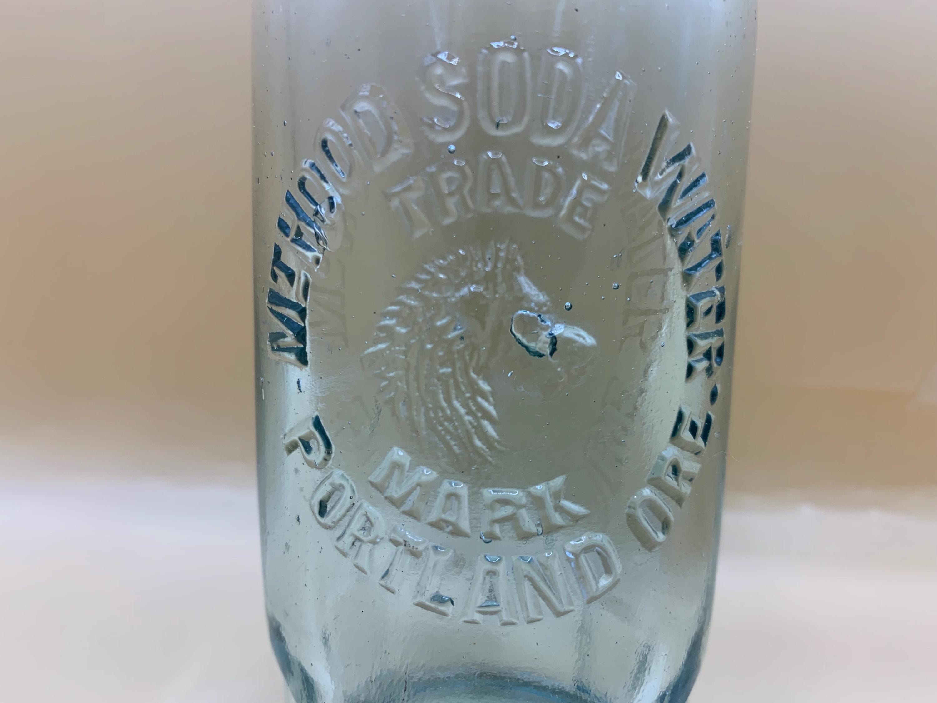This is a “blob” topped mouth blown “mug base” soda bottle made by Holt Glass Works in San Francisco, California for the Mt. Hood Soda Water (Mt. Hood Soap and Soda Company) in Portland Oregon between 1902 and 1906.