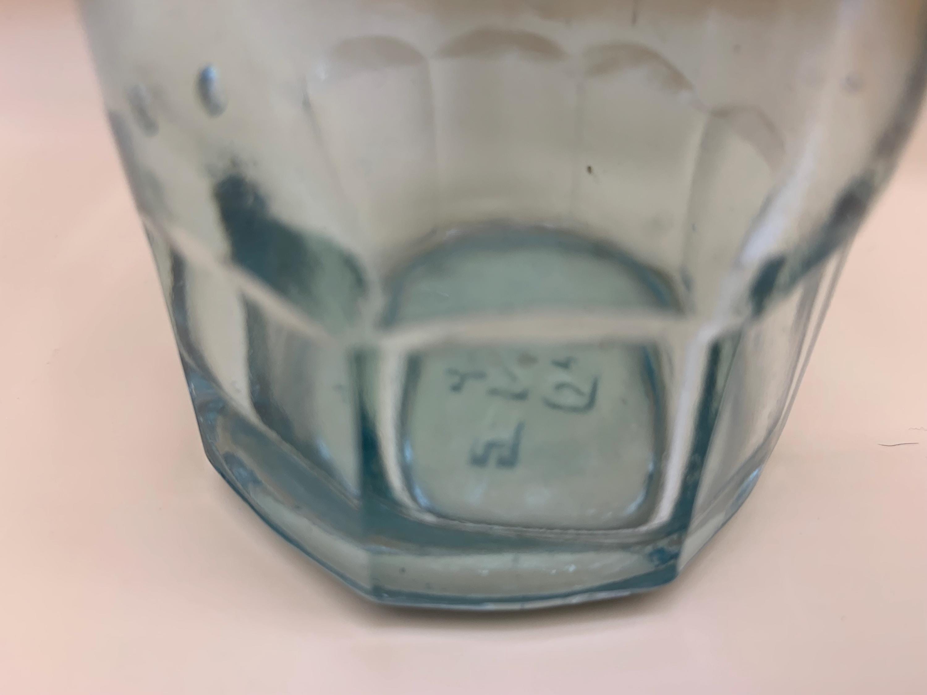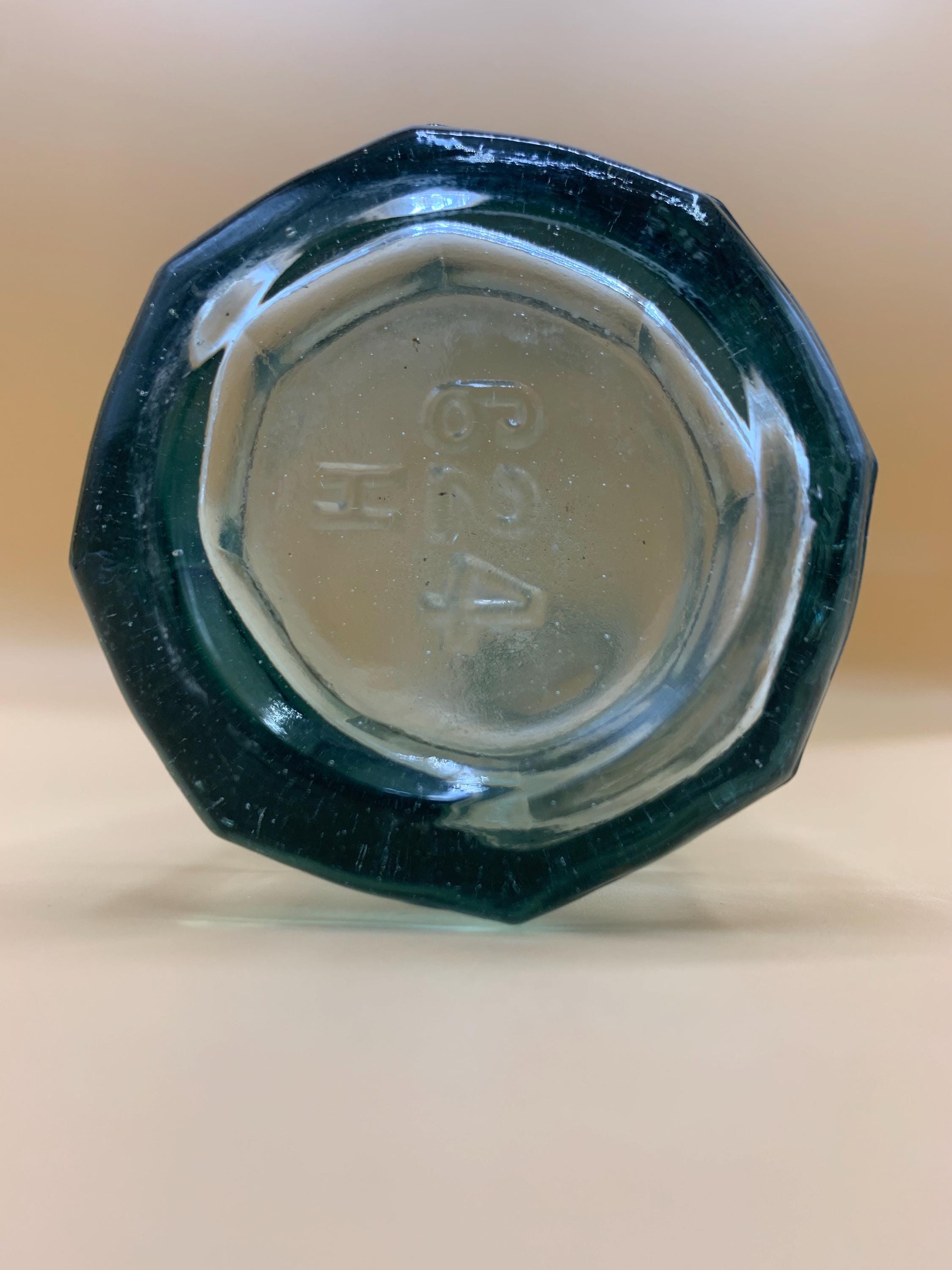 A "mug base" is an old-fashioned hexagonal or square bottle base that was available on early American soda and mineral water bottles. This design was prevalent in the late 19th and early 20th centuries before bottle manufacturing became fully automated. These 10-sided base designs, helped to provide a stable and flat surface. They were made using manual glassblowing methods to construct the bottle. Before machine production began this was considered the most technical method of glass bottle production for most all soda bottle manufacturers.