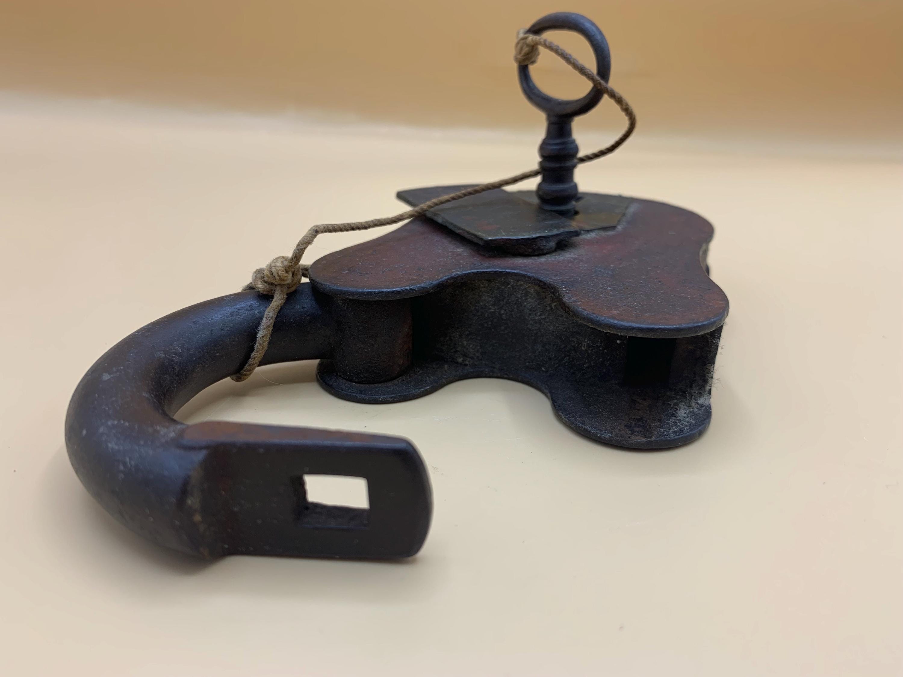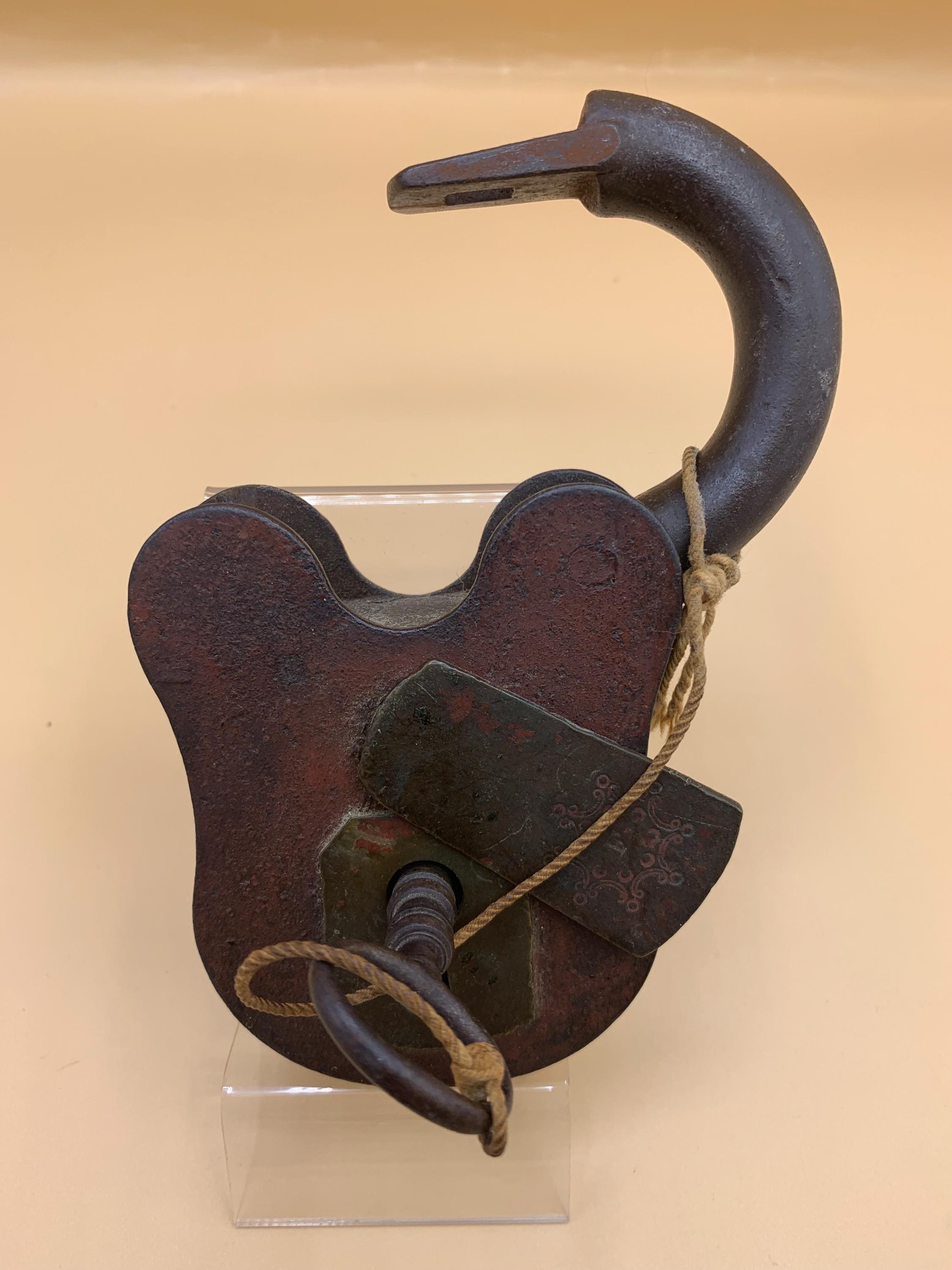 Intricate embossed or stamped details made locks harder to fake as well as indicating a custom quality lock. In the 1880s, this technique allowed a certain layer of security against theft or unauthorized access to valuable boxcar cargo and engineering equipment on industrial sites. Another major need for Railroad padlocks was to reduce the tampering of track switches controls that could cause catastrophic accidents.