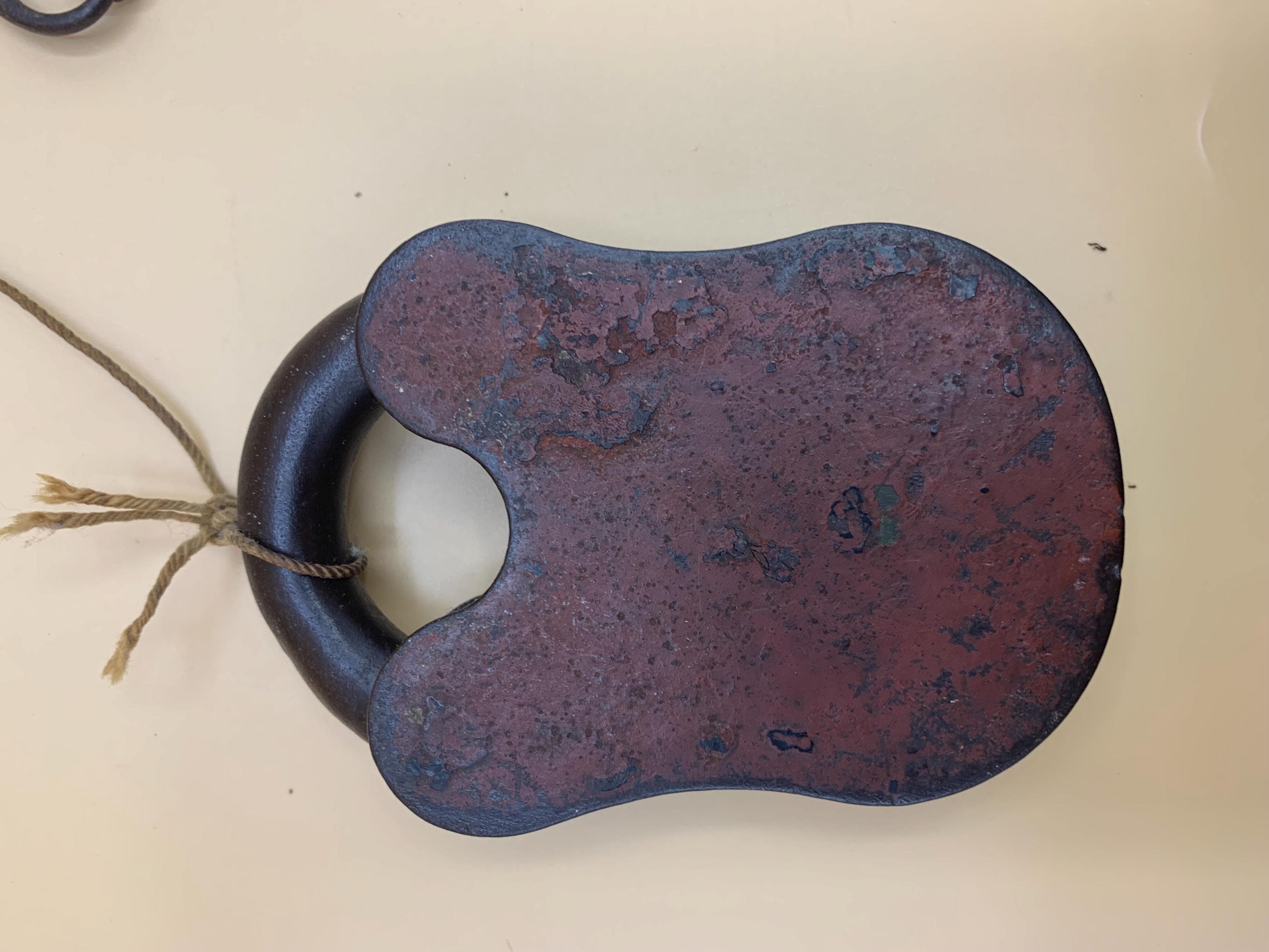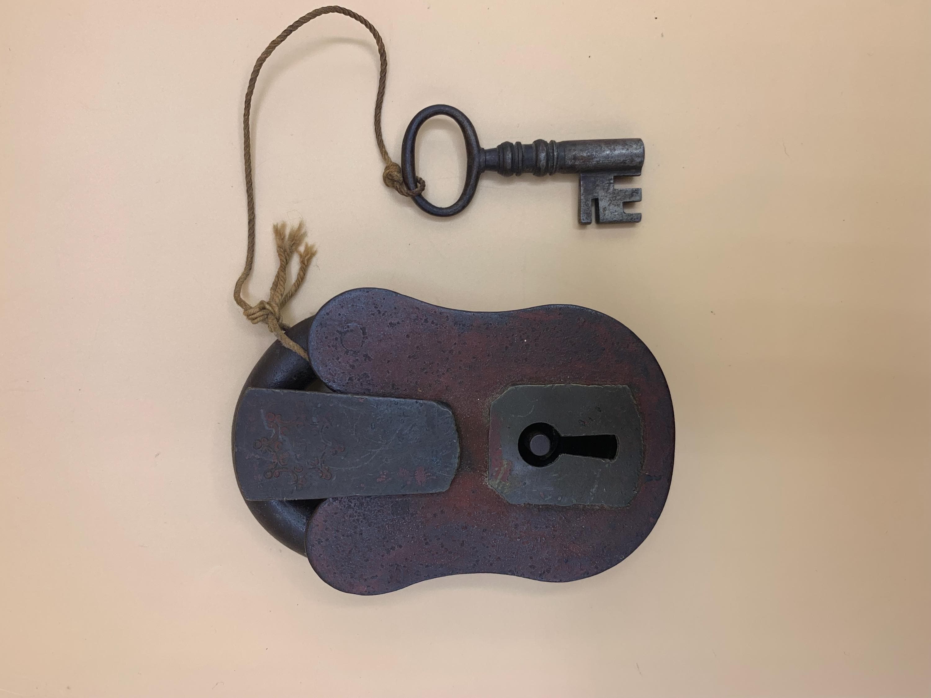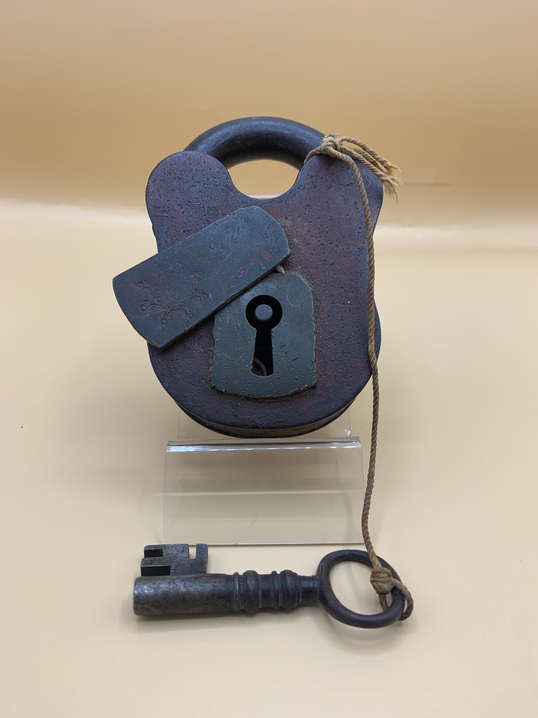 About 1890 Parker and Miller left the company and formed Lancaster Silver Company. E.T.'s sons Walter and Samuel entered into business with their father and took over the original business when E.T. Fraim died on May 2, 1917. Then in 1920 Samuel bought out Walter. Within a year Walter purchased an interest in Slaymaker Lock, thus forming Fraim-Slaymaker Lock Company (F-S). The warded locks and skeleton keys fell out of favor during the great depression and iron was reserved for war efforts during World War II. By 1950, ward locks were replaced by better and more secure pin-tumbler locks that used flat shearline match keys. In 1955 the Keystone Lock Company was acquired by Safe Hardware and Lock Company in York, Pennsylvania. In 1986 the Slaymaker division of Fraim closed the original Keystone Lock Company operations in Lancaster, Pennsylvania. Many warded locks were mostly recycled after their “design flaws” were exposed that led to new locking innovations making warded operational locks with the skeleton key very rare and difficult to find. MemoryLaneVintiques picked this item at an estate sale in Grapevine, TX.